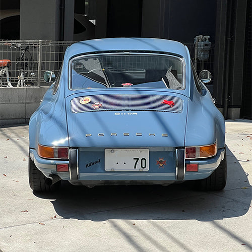 A red Pegasus grille badge to be attached to the grille of a 911 or 356.